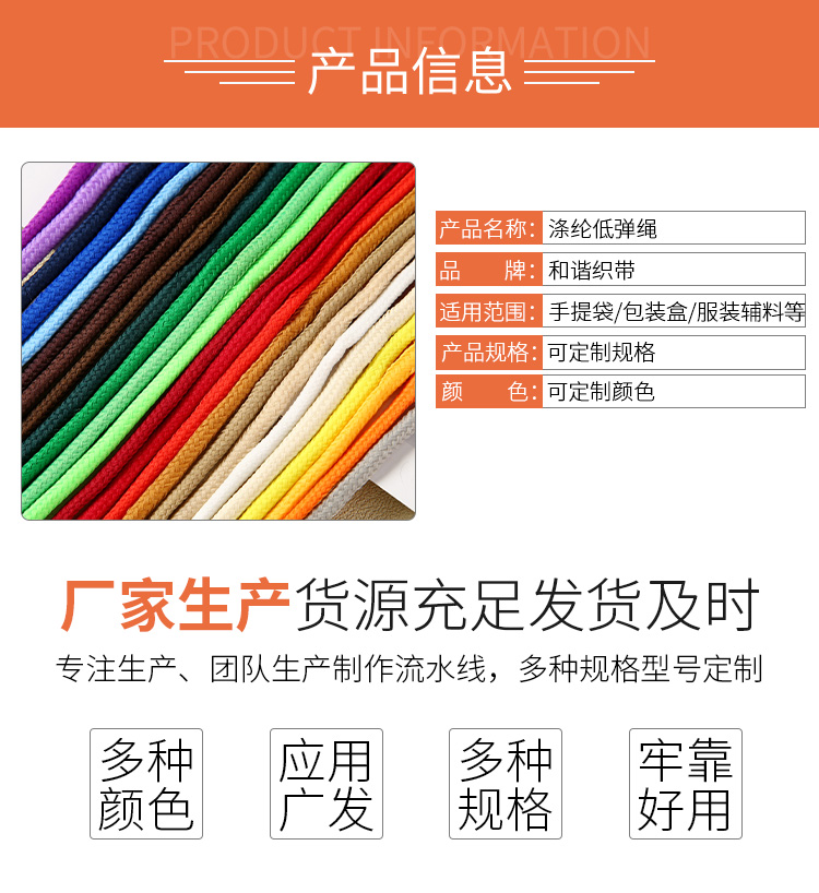 您當前的位置:首頁 / 產品中心 / 滌棉圓繩 SP線繩 / 滌綸低彈繩